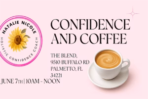 Looking for a fresh way to start your weekend? 🌞 Mark your calendar for Saturday, June 7th, from 10 AM to 12 PM EDT and join us at the vibrant The Blend (9510) Coffee & Cocktails in Palmetto, FL, for an uplifting morning at Confidence & Coffee! πŸ’ͺπŸŽ‰