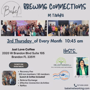 Join a vibrant community of entrepreneurs, professionals, and go-getters at Brewing Connections in Tampa β a dynamic midday networking event where meaningful relationships are brewed alongside your favorite coffee!