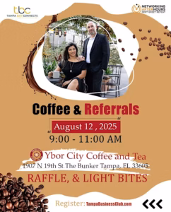Ready to spark meaningful conversations, make valuable connections, and enjoy a fresh cup of local brew? Join us for Coffee & Referrals at Ybor City Coffee and Tea Co on Tuesday, August 12, from 9 AM to 11 AM EDT!