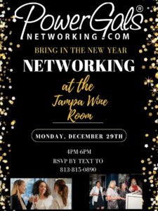 Get ready to kick off 2026 with connection, empowerment, and community spirit at the Power Gals Bring In The New Year Networking Event! On December 29 from 4:00 PM to 6:00 PM EST, join us at Tampa Wine Room, 11724 North Dale Mabry Highway, Tampa, FL 33618 for an evening full of networking, inspiration, and fun.