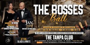 Step into an unforgettable night of leadership, culture, and celebration at The Bosses Ball happening January 23 from 7 PMβ11 PM EST in downtown Tampa. This high-energy experience brings together bold leaders, creatives, and visionaries for powerful connections, elevated vibes, and unforgettable moments. Come ready to network, celebrate excellence, and stand in your brilliance.