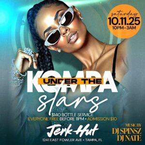 Get ready for a night of rhythm, culture, and pure island vibes! Food Clothing and Shelter Productions invites you to experience Kompa Under the Stars at 1241 E Fowler Ave, Tampa, FL. This unforgettable event will have you dancing the night away under the open sky with the soulful sounds of Kompa music, great food, and the energy of community celebration.