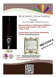 Rooted in Kemetic (Ancient Egyptian) philosophy, the 7 Principles of Ma’at represent truth, justice, harmony, balance, order, reciprocity, and righteousness. This transformative workshop invites you to explore these principles and learn how to apply them to your daily life, relationships, and spiritual path.