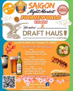 Tampa, get ready for a flavor-packed weekend that will excite your taste buds, energize your senses, and immerse you in a vibrant celebration of culture! The Tampa Saigon Night Market x Yuengling Foodie World โ Asia Family Fun is here, and it promises to be a one-of-a-kind experience you wonโt want to miss.