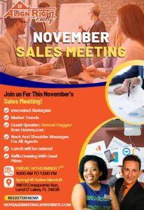 It’s that time again—Align Right Realty International Corp is bringing the energy, inspiration, and unstoppable momentum to their November Sales Meeting on November 7th from 10 a.m. to 2 p.m. 🎉