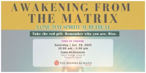 Join us on Saturday, July 19, from 10 AM to 3 PM EDT at the peaceful Tampa BK Meditation Center for “Awakening from the Matrix,” a transformative one-day spiritual retreat designed to help you unplug from the noise and tap into the peace and consciousness within.