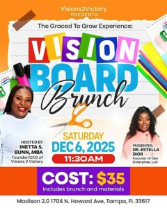 Step into a brunch experience like no other with Graced to Grow Vision Board Brunch. This isn’t your average networking lunch — it’s a curated space for vision, clarity, connection and purpose.