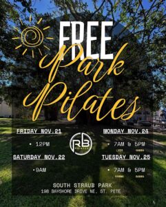 Get ready to stretch, strengthen, and refresh in the heart of St. Petersburg! On Friday, November 21, from 12:00 PM to 12:45 PM EST, join Rare Body Studio for a FREE outdoor Pilates session at South Straub Park (198 Bayshore Drive Northeast).