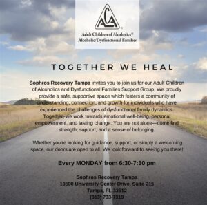 Tampa, if you or someone you care about has been impacted by growing up in an alcoholic home, thereβs a welcoming space for you to heal, share, and grow. Every Monday from 6:30 PM to 7:30 PM, join the Adult Children of Alcoholics β 12 Step Meetings at 10500 University Center Drive, Suite 215.