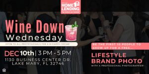 Orlando, itβs time to unwind, sip, and connect! On Tuesday, December 10, from 3 PM to 5 PM EST, join Wine Down Wednesdays at Home1st Lending, located at 1130 Business Center Drive, Lake Mary, FL 32746.