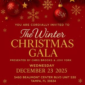 Celebrate the magic of the season at The Winter Christmas Gala! Join us Saturday, December 23, from 9 PM to 1 AM EST at 5460 Beaumont Center Boulevard, Unit 530, Tampa, FL, for an unforgettable evening filled with elegance, music, and festive cheer.