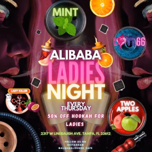 πŸŽ‰ Ladies Night at Alibaba Lounge & Kava Bar – Tampa’s Best Hookah Spot πŸŽ‰