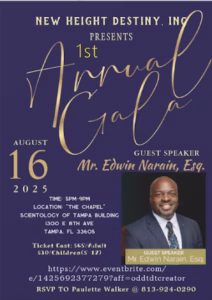 You’re invited to a night of elegance and empowerment at the 1st Annual Gala Fundraiser hosted by New Height Destiny, Inc. Join community leaders, change-makers, and supporters for a meaningful evening filled with connection, inspiration, and giving back.