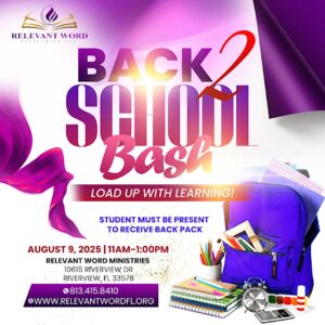 Hey Riverview! Get ready to jump-start the school year with joy at the Back to School Bash, happening Saturday, August 9 from 11 AM to 1 PM at 10615 Riverview Drive, Riverview, FL!
