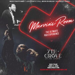 Turn up the heat this Valentine’s weekend at MARVIN’S ROOM: The Ultimate R&B Experience! Join this grown & sexy, late-night R&B party on February 14 from 10:00 PM to February 15 at 3:00 AM EST at 7th + Grove, located at 1930 East 7th Avenue, Tampa, FL 33605.