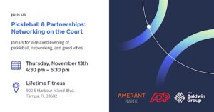 Combine business and fun at Pickleball & Partnerships: Networking on the Court, happening November 13 from 4:30 PM to 6:30 PM EST at Life Time, 900 South Harbour Island Boulevard, Tampa, FL 33602.