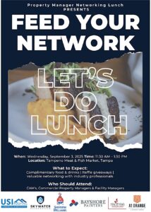 Calling all Tampa Bay property managers and real estate professionals! Mark your calendars for the Property Manager Networking Lunch happening Wednesday, September 3 from 11:30 AM to 1:30 PM at the one-of-a-kind Tampeño Fish and Meat Market.