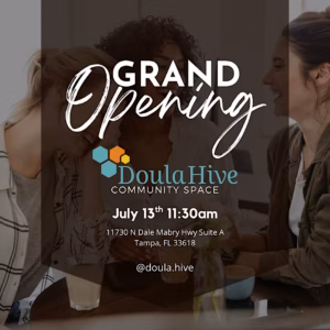 A beautiful new space for support, connection, and empowerment is opening in Tampa — and you’re invited to celebrate! Be part of the excitement at the Doula Hive Grand Opening, a special event welcoming families, birth workers, and community members alike.