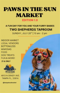 Get ready for tail wags, sunshine, and community vibes at Paws in the Sun β Edition 1.0, happening Sunday, July 20 from 10 AM to 2 PM at Two Shepherds Taproom, Tampaβs favorite dog-friendly venue!