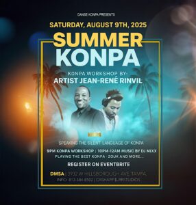 Looking to spice up your summer nights? Donβt miss the Summer Konpa Workshop β Social, happening Friday, August 9th, from 9:00 PM to 12:00 AM at Dancinβ Motion School of the Arts in Tampa!