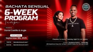 Join us starting Tuesday, September 9, 2025 at Dance Factory – Tampa Bay for the Bachata Sensual 6-Week Intermediate Program with internationally recognized instructors Daniel Castillo & Angie!