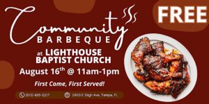 Get ready for a mouthwatering good time at the FREE Community BBQ happening Saturday, August 16 from 11 AM to 1 PM at 2903 East Sligh Avenue, Tampa, FL!
