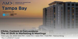 Level up your expertise and take action at Clicks, Content & Conversions: The AI Shift in Marketing & Meetings! Join this insightful professional event on February 26 from 3:00β€―PM to 7:00β€―PM EST at The CURRENT Hotel, Autograph Collection, 2545 North Rocky Point Drive, Tampa, FL 33607.