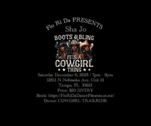 β¨Get ready to dust off your boots and sparkle in your bling at BOOTS & BLING β Itβs A Cowgirl Thing! Join us Wednesday, December 6, from 7 PM to 9 PM EST at 12811 North Nebraska Avenue, Unit H, Tampa, FL, for an unforgettable evening of music, dancing, and all things cowgirl.
