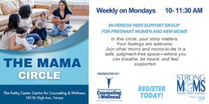 Held weekly at the Kathy Castor Centre for Counseling and Wellness, this in-person gathering invites moms to share their stories, celebrate milestones, and navigate the ups and downs of parenting with compassion and understanding. Whether youβre a new mom, seasoned parent, or anywhere in between, youβll find friendship, laughter, and valuable insights to nourish your well-being.