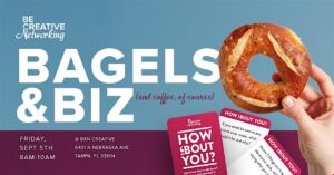Join us for Bagels & Biz Networking on Friday, September 5, from 8:00 AM to 10:00 AM EDT at 6401 North Nebraska Avenue, Tampa, FL 33604. Whether you’re a seasoned entrepreneur, small business owner, freelancer, or just getting started β this relaxed, high-energy networking event is your chance to connect with like-minded go-getters over a hot cup of coffee and (yes!) delicious bagels.