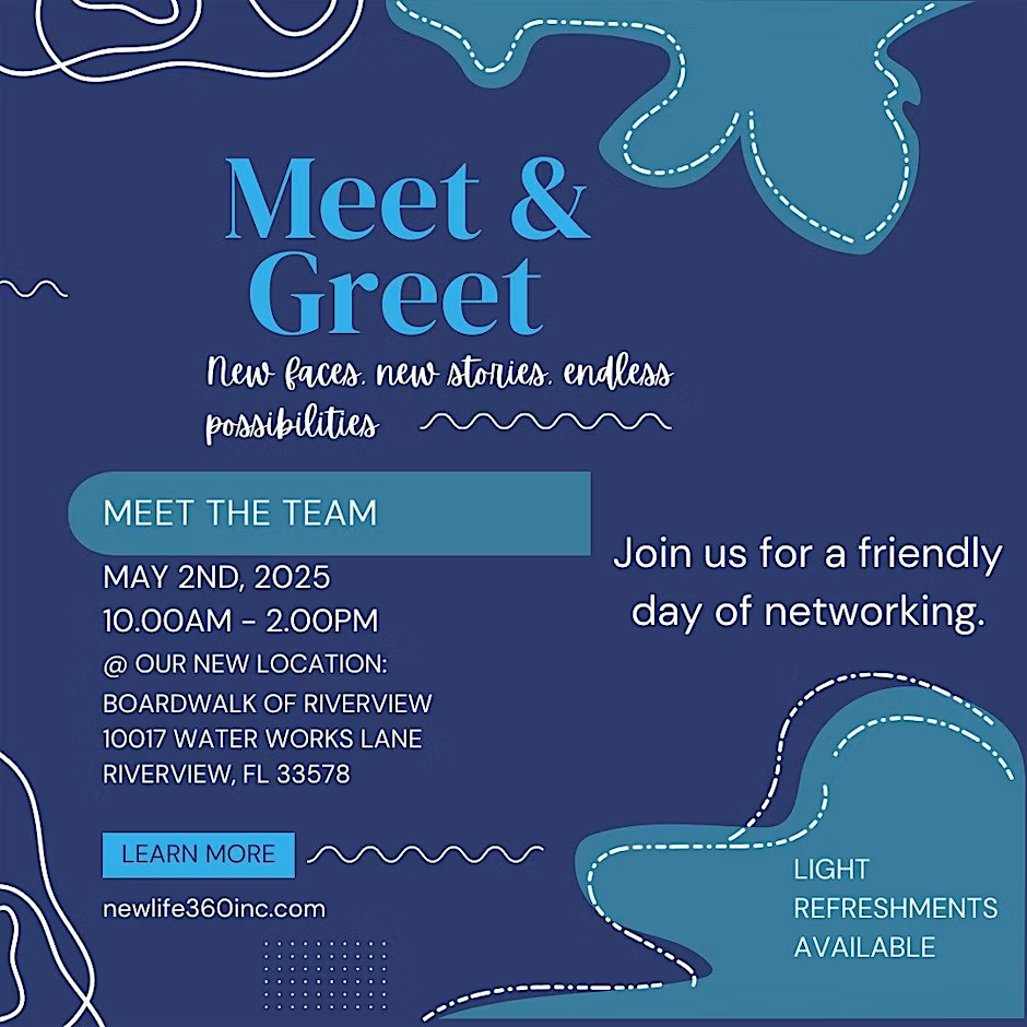 Join the New Life 360 – Meet & Greet for a morning of meaningful connections and purpose-driven networking! 📅 Date: Friday, May 2 ⏰ Time: 10:00 AM – 2:00 PM EDT 📍 Location: 10017 Water Works Lane, Riverview, FL 33578 Hosted by New Life 360, Inc., this community-centered event is designed to bring together professionals, visionaries, and changemakers who are passionate about making a difference. Whether you’re new to the area or a long-time supporter, this is your opportunity to learn more about the mission of New Life 360 and how you can be part of the movement. 🤝 Come ready to: Meet the team behind New Life 360 Network with local leaders and community members Explore opportunities to collaborate or get involved 🎟️ Reserve your spot today: Click here to register on Eventbrite https://www.eventbrite.com/e/new-life-360-meet-greet-tickets-1292925277309?aff=ebdssbdestsearch 🔗 Learn more or get in touch:https://newlife360inc.com/ Let’s build stronger communities—together. #Tampa #TampaBay #StPete #Clearwater #ThingsToDo #LocalEvents #Networking #TampaBayConnects #TampaNetworking #WomenInBusiness #TampaEntrepreneurs #Startups #TampaEats #TampaNightlife #DowntownTampa #TampaEvents #TampaSocials TampaBusinessClub tampabayconnects.com WomenImpactNetwork TampaBayLatinChamber https://www.eventbrite.com/e/new-life-360-meet-greet-tickets-1292925277309?aff=ebdssbdestsearch tampabayconnects