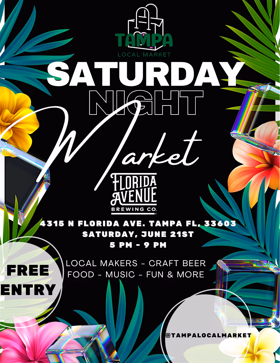 Get ready to light up your Saturday night on June 21, from 5 PM to 9 PM, at the Florida Avenue Brewing Co. β located at 4315 North Florida Avenue, Tampa, FL. Join the vibrant community for an evening filled with local vendors, delicious craft brews, tasty eats, and live entertainment! The Saturday Night Market is the perfect way to unwind, explore unique finds, and support Tampaβs thriving local scene. Bring your friends, sip on your favorite brew, and discover amazing handmade goods and treats. Itβs a night out you donβt want to miss! ποΈ Reserve your spot now! π Get your tickets here https://www.eventbrite.com/e/saturday-night-market-tickets-1384535816899?aff=ebdssbdestsearch πΈ See the vibe on Instagram: Saturday Night Market | Tampa Local Market #Tampa #TampaBay #StPete #Clearwater #ThingsToDo #LocalEvents #Networking #TampaBayConnects #TampaNetworking #WomenInBusiness #TampaEntrepreneurs #Startups #TampaEats #TampaNightlife #DowntownTampa #TampaEvents #TampaSocials#tampaMagazine #TampaBayMagazine TampaBusinessClub tampabayconnects.com WomenImpactNetwork TampaBayLatinChamber https://www.eventbrite.com/e/saturday-night-market-tickets-1384535816899?aff=ebdssbdestsearch tampabayconnects