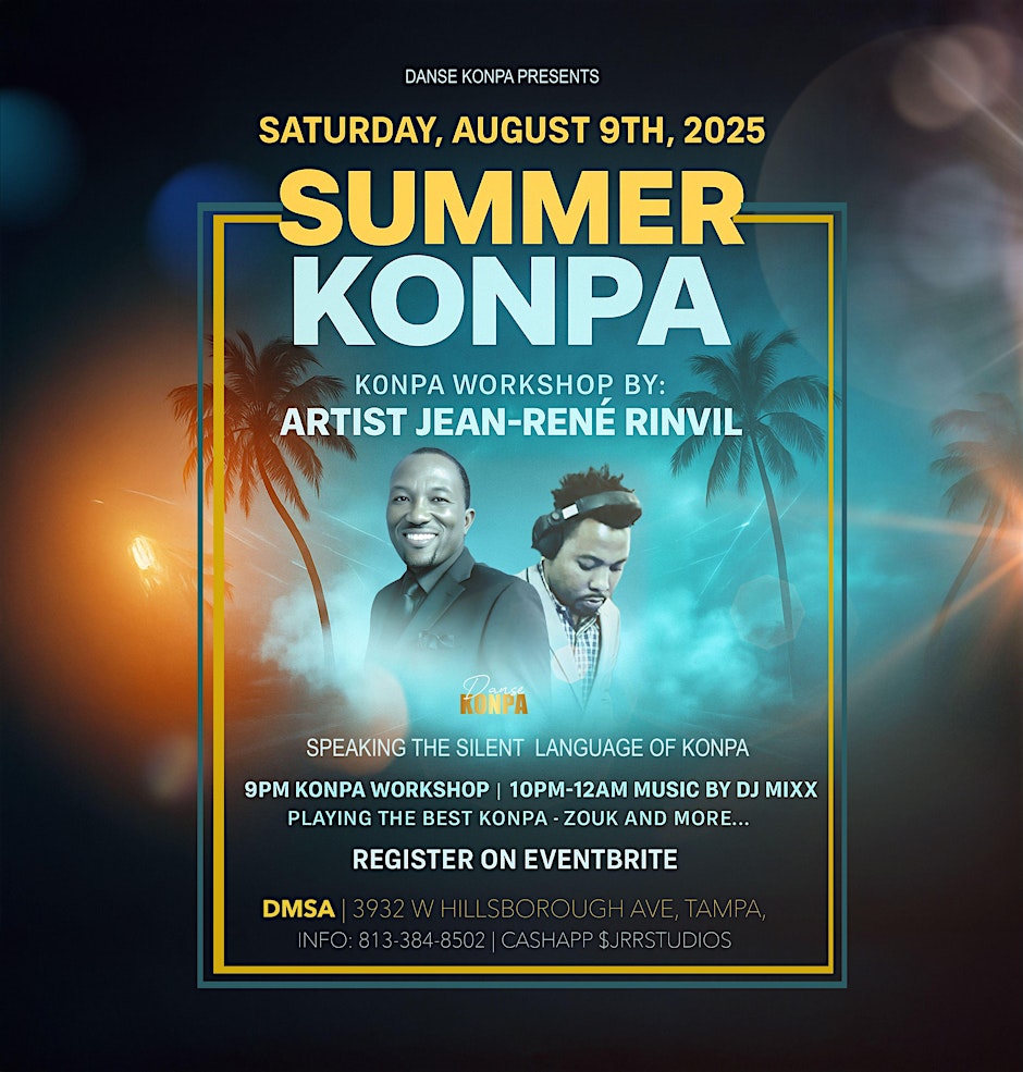 Looking to spice up your summer nights? Don’t miss the Summer Konpa Workshop – Social, happening Friday, August 9th, from 9:00 PM to 12:00 AM at Dancin’ Motion School of the Arts in Tampa! 📍 Location: Dancin’ Motion School of the Arts 3936 West Hillsborough Avenue, Tampa, FL 33614 🗓️ Date: Friday, August 9 🕘 Time: 9:00 PM – 12:00 AM EDT (Doors open at 9:45 PM) Get ready to immerse yourself in the smooth, soulful beats of Konpa, the sensual partner dance from Haiti that’s taking the social dance scene by storm! Whether you’re new to Konpa or already in love with its rhythm, this workshop-social combo is perfect for dancers of all levels. Expect a high-energy evening filled with movement, connection, and community. Come solo or bring a friend—just be ready to dance, vibe, and have a blast! 🎶 What to Expect: Fun, beginner-friendly Konpa workshop Open social dancing with great music A welcoming dance community Nonstop positive energy! 🎟️ Reserve your spot now: Register here! 📸 Instagram Event Post Don’t miss your chance to heat up your Friday night with rhythm, connection, and Konpa vibes you won’t forget! #Tampa #TampaBay #StPete #Clearwater #ThingsToDo #LocalEvents #Networking #TampaBayConnects #TampaNetworking #WomenInBusiness #TampaEntrepreneurs #Startups #TampaEats #TampaNightlife #DowntownTampa #TampaEvents #TampaSocials #tampaMagazine #TampaBayMagazine TampaBusinessClub.com tampabayconnects.com WomenImpactNetwork.com TampaBayLatinChamber.com https://www.instagram.com/p/DMaZvHCsy7N/ tampabayconnects