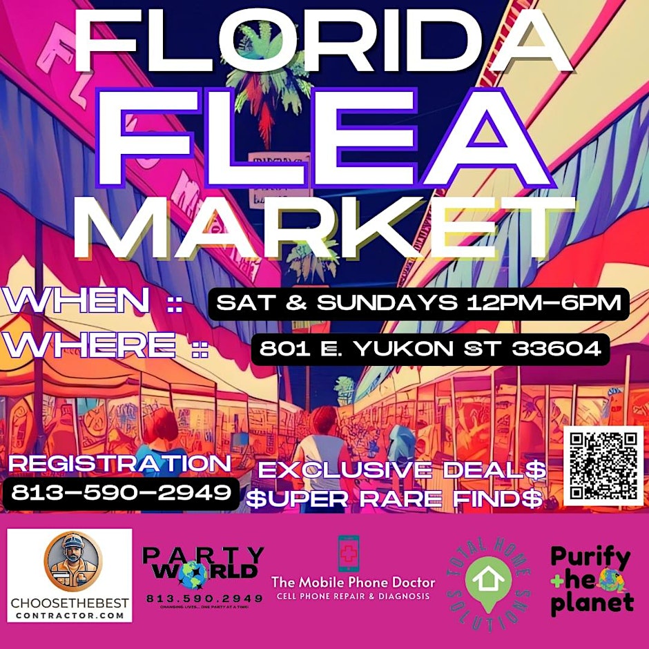 🛍️ Treasure Hunting, Local Vibes & Sunshine — It’s Time for the Florida Flea Market! 🛍️ Saturday • 12:00 PM | East Sligh Ave & North 30th St, Tampa