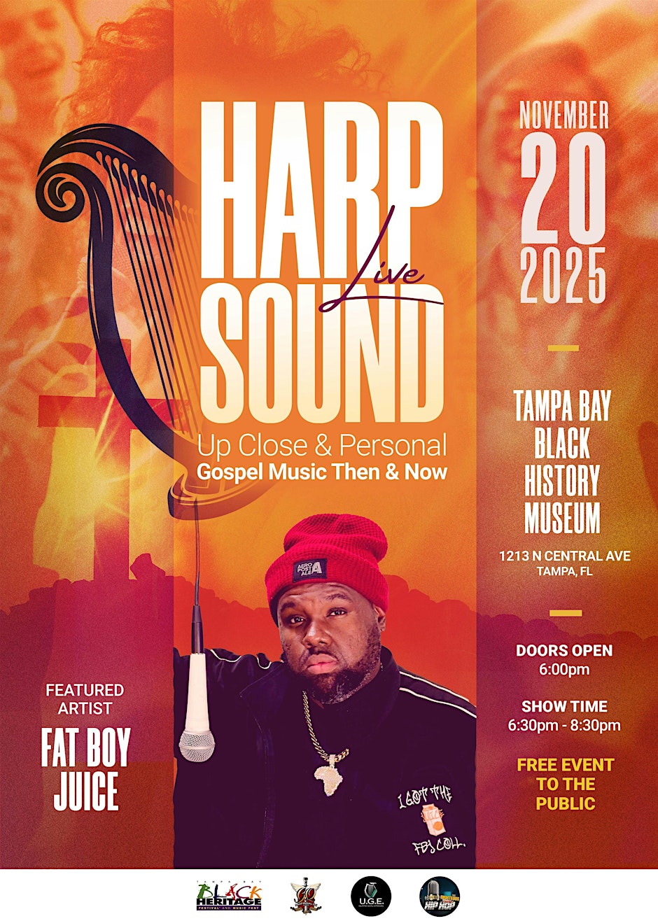 Get ready for an unforgettable evening of soulful melodies and electrifying performances at HarpSound Live β Up Close & Personal Ft. Fat Boy Juice! Join us on Thursday, November 20, from 6:30β8:30 PM EST at 1213 North Central Avenue, Tampa, FL for a night that will delight music lovers of all kinds. Feel the magic of live harp music blended with the vibrant energy of Fat Boy Juice, creating a one-of-a-kind performance that will captivate your senses. This intimate event promises an up-close experience where every note resonates and every beat moves you. Whether you’re a longtime fan or new to this dynamic duo, this is a concert you won’t want to miss! π Location: 1213 North Central Avenue, Tampa, FL 33602 ποΈ Reserve Your Spot Now: Get Tickets for HarpSound Live πΈ Follow Us on Instagram: Stay tuned for event updates and behind-the-scenes content: @uge_harpsound @fbj_juice Immerse yourself in the music, feel the energy, and be part of a night to remember! πΆβ¨ #Tampa #TampaBay #StPete #Clearwater #ThingsToDo #LocalEvents #Networking #TampaBayConnects #TampaNetworking #WomenInBusiness #TampaEntrepreneurs #Startups #TampaEats #TampaNightlife #DowntownTampa #TampaEvents #TampaSocials#tampaMagazine #TampaBayMagazine TampaBusinessClub.com Tampabayconnects.com WomenImpactNetwork.com TampaBayLatinChamber.com https://www.eventbrite.com/e/harpsound-live-up-close-personal-ft-fat-boy-juice-tickets-1790243770309?aff=ebdssbdestsearch tampabayconnects