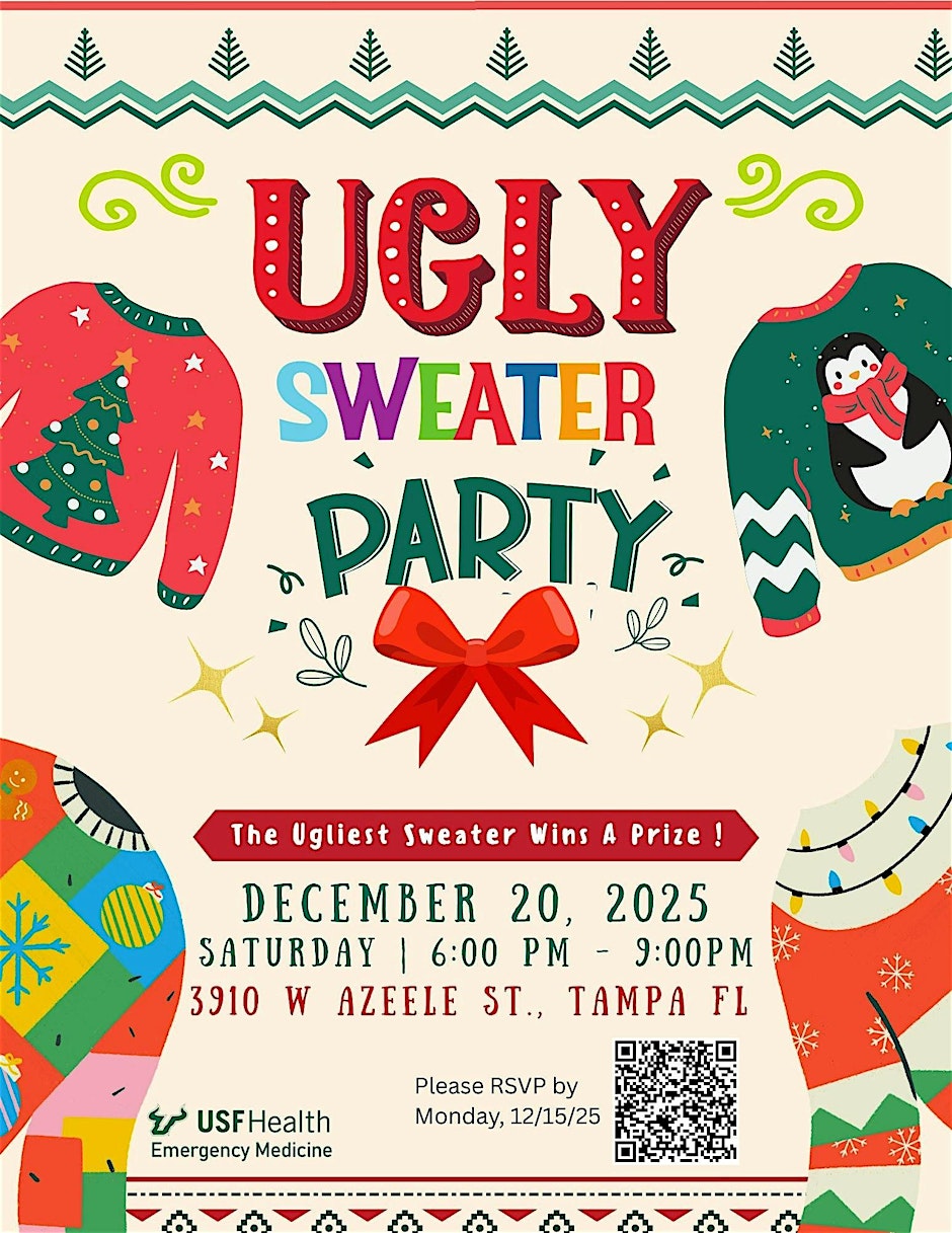 Get ready for a night of laughs, connection, and festive cheer β itβs time for the USF EM Annual Ugly Sweater Holiday Social! This event is the perfect blend of holiday fun and meaningful community bonding, all wrapped in the most wonderfully tacky sweaters you can find. π Holiday Fun Includes: π§£ Ugly sweater contest with big laughs & prizes π½οΈ Food, drinks & festive treats π Games, music & warm holiday atmosphere π€ A chance to unwind with peers & colleagues πΈ Fun photos & memories to close the year strong Expect a warm, relaxed, joy-filled environment where colleagues, friends, and peers gather to share food, stories, games, and holiday spirit. Whether you arrive in glitter, lights, or a sweater that absolutely should NOT exist β youβre among your people. π Date & Time: Dec 20 from 6PMβ9PM EST π Location: 3910 West Azeele Street, Tampa, FL 33609 The night promises moments youβll remember all season long, from fun contests to shared traditions to the kind of laughter that brings everyone closer. πΈ Your next opportunity might be on our feed β FOLLOW! π Clockβs ticking β REGISTER NOW! #Tampa #TampaBay #StPete #Clearwater #ThingsToDo #LocalEvents #Networking #TampaBayConnects #TampaNetworking #WomenInBusiness #TampaEntrepreneurs #Startups #TampaEats #TampaNightlife #DowntownTampa #TampaEvents #TampaSocials #tampaMagazine #TampaBayMagazine TampaBusinessClub.com Tampabayconnects.com WomenImpactNetwork.com TampaBayLatinChamber.com https://www.eventbrite.com/e/usf-em-annual-ugly-sweater-holiday-social-tickets-1790842711759?aff=ebdssbdestsearch tampabayconnects