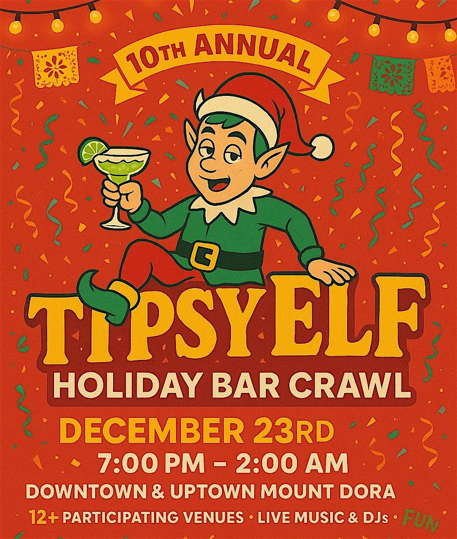 Mount Dora, get ready to jingle all the way! The 10th Annual Tipsy Elf Holiday Bar Crawl is back on December 23, from 4:30 PM to 11:30 PM (EST) at Sunset Park, promising an evening of festive fun, laughter, and holiday cheer that you wonβt want to miss. Located at 230 West 4th Avenue, Mount Dora, FL 32757, this beloved annual event invites you to don your most creative elf or holiday costume, grab your friends, and embark on a merry adventure through the townβs lively bars and festive hotspots. With music, games, and surprises along the way, itβs the perfect way to celebrate the season in style. β¨ Why You Should Join: A festive, costume-filled bar crawl with holiday spirit Music, games, and surprises at every stop Celebrate the season with friends, fun, and cheer A unique Mount Dora holiday tradition you wonβt want to miss π Location: Sunset Park 230 West 4th Avenue Mount Dora, FL 32757, United States ποΈ Grab Your Tickets Now: π Register here: Get ready for a night of holiday mischief, laughter, and cheer at the Tipsy Elf Holiday Bar Crawlβbecause the season is best celebrated with friends, fun, and a little festive spirit! π π₯ #Tampa #TampaBay #StPete #Clearwater #ThingsToDo #LocalEvents #Networking #TampaBayConnects #TampaNetworking #WomenInBusiness #TampaEntrepreneurs #Startups #TampaEats #TampaNightlife #DowntownTampa #TampaEvents #TampaSocials #tampaMagazine #TampaBayMagazine TampaBusinessClub.com Tampabayconnects.com WomenImpactNetwork.com TampaBayLatinChamber.com https://www.eventbrite.com/e/10th-annual-tipsy-elf-holiday-bar-crawl-registration-1743770357079?aff=erellivmlt tampabayconnects