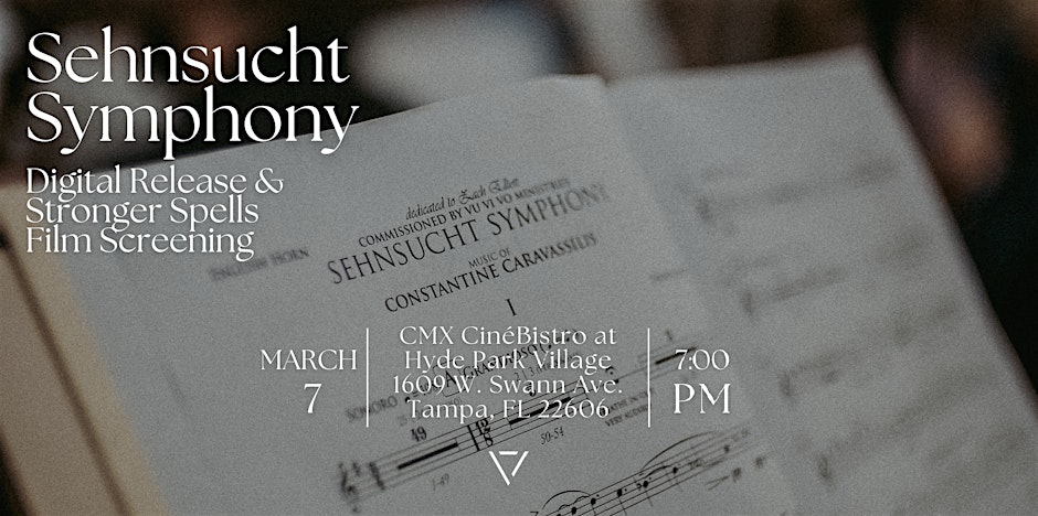 Get ready for an evening of music, film, and cinematic magic at the Sehnsucht Symphony Digital Release & Stronger Spells Film Screening! On March 7 from 7:00 PM to 9:00 PM EST, fans, friends, and film lovers will gather at CMX CinΓ©Bistro at Hyde Park Village, 1609 West Swann Avenue, Tampa, FL 33606, for a night of creativity, inspiration, and unforgettable storytelling. This special event brings together music enthusiasts and film buffs to celebrate the digital release of the Sehnsucht Symphony alongside the captivating Stronger Spells film screening. Enjoy an immersive evening with a lively atmosphere perfect for connecting with fellow fans. β¨ Ready to attend? Save your spot here: π Register hereΒ πΈ Follow along on Instagram : @vuvivo_v3 Come for the music and film, stay for the community and experience β itβs a night you wonβt forget! ππΆπ₯ #Tampa #TampaBay #StPete #Clearwater #ThingsToDo #LocalEvents #Networking #TampaBayConnects #TampaNetworking #WomenInBusiness #TampaEntrepreneurs #Startups #TampaEats #TampaNightlife #DowntownTampa #TampaEvents #TampaSocials #tampaMagazine #TampaBayMagazine TampaBusinessClub.com Tampabayconnects.com WomenImpactNetwork.com TampaBayLatinChamber.com https://www.eventbrite.com/e/sehnsucht-symphony-digital-release-stronger-spells-film-screening-tickets-1977238898772?aff=ebdssbdestsearch tampabayconnects