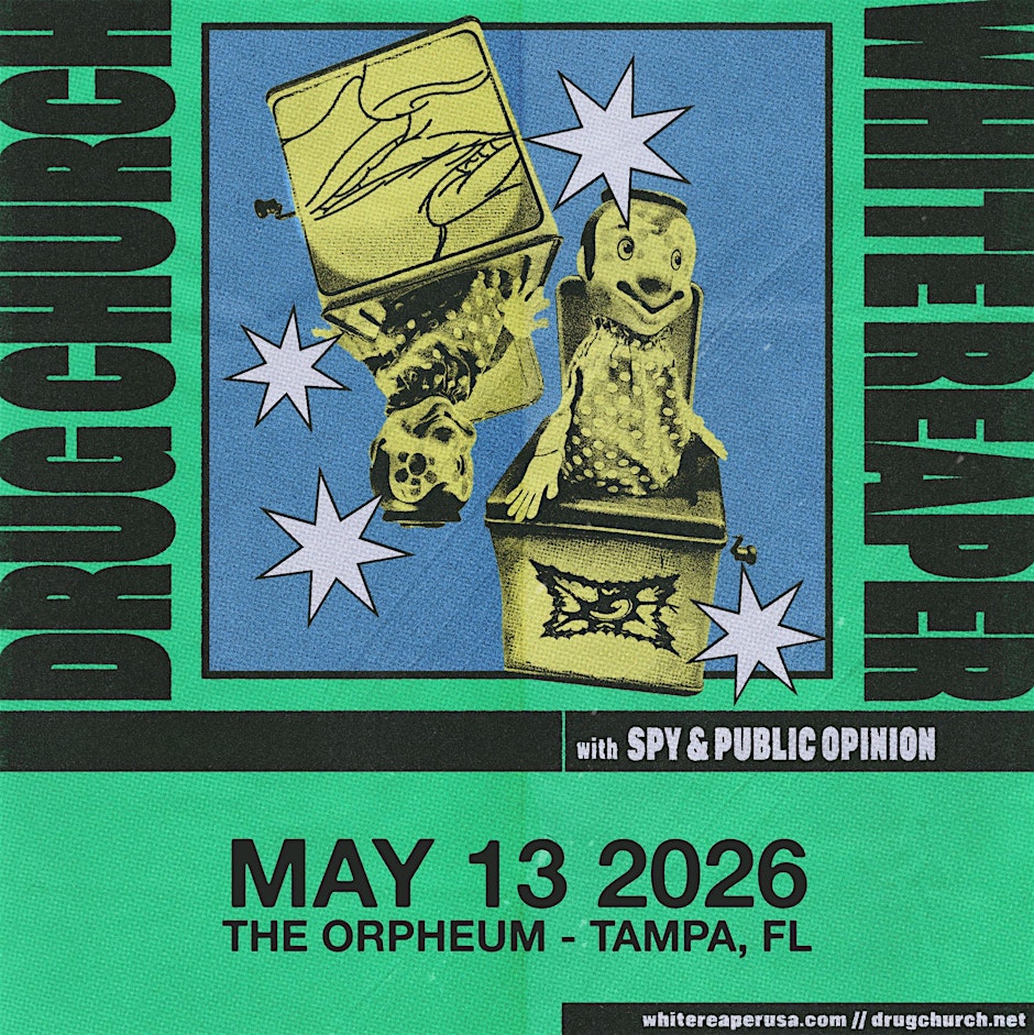 Get ready for an electrifying night of punk energy and live music with Drug Church! On May 13 at 6:00 PM EDT, fans and music lovers will gather at The Orpheum, 14802 North Nebraska Avenue, Tampa, FL 33613, for a highβoctane performance thatβll light up the stage and the crowd. Known for their fierce riffs and razorβsharp lyrics, Drug Church has built a devoted following with their explosive blend of postβhardcore and punk rock that hits hard and leaves a lasting impression.Β β¨ Ready to rock? Save your spot here: π Register here πΈ Follow along on Instagram: @drugchurch Donβt miss this chance to experience one of punkβs most dynamic live acts right here in Tampa β itβs going to be a night you wonβt forget! πΆπ₯ #Tampa #TampaBay #StPete #Clearwater #ThingsToDo #LocalEvents #Networking #TampaBayConnects #TampaNetworking #WomenInBusiness #TampaEntrepreneurs #Startups #TampaEats #TampaNightlife #DowntownTampa #TampaEvents #TampaSocials #tampaMagazine #TampaBayMagazine TampaBusinessClub.com Tampabayconnects.com WomenImpactNetwork.com TampaBayLatinChamber.com https://www.eventbrite.com/e/drug-church-tickets-1977680541738?aff=ebdssbdestsearch tampabayconnects