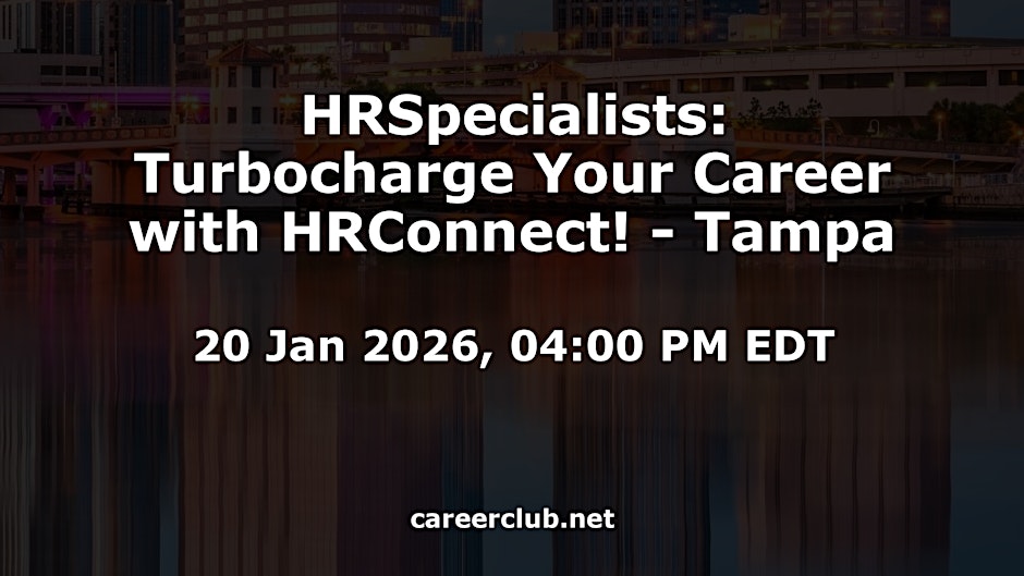 Get ready to ignite your professional journey at HRSpecialists: Turbocharge Your Career with HRConnect! — a dynamic HR career-boosting event on January 20, 4:00–6:00 PM EST in Tampa. Whether you’re just stepping into human resources or ready to elevate your path, this session delivers actionable insights, networking power, and real-world advice tailored for HR pros and aspirants alike. Connect with industry peers, sharpen your career strategy, and walk away with tools that help you stand out in a competitive job market. 📲 Follow the community on Instagram: @hrtalenthub 👉 Secure your spot now: Don’t miss this chance to power-up your professional HR brand! 💼✨ #Tampa #TampaBay #StPete #Clearwater #ThingsToDo #LocalEvents #Networking #TampaBayConnects #TampaNetworking #WomenInBusiness #TampaEntrepreneurs #Startups #TampaEats #TampaNightlife #DowntownTampa #TampaEvents #TampaSocials #tampaMagazine #TampaBayMagazine TampaBusinessClub.com Tampabayconnects.com WomenImpactNetwork.com TampaBayLatinChamber.com https://www.eventbrite.com/e/hrspecialists-turbocharge-your-career-with-hrconnect-tampa-tickets-1977903628998?aff=ebdssbdestsearc tampabayconnects
