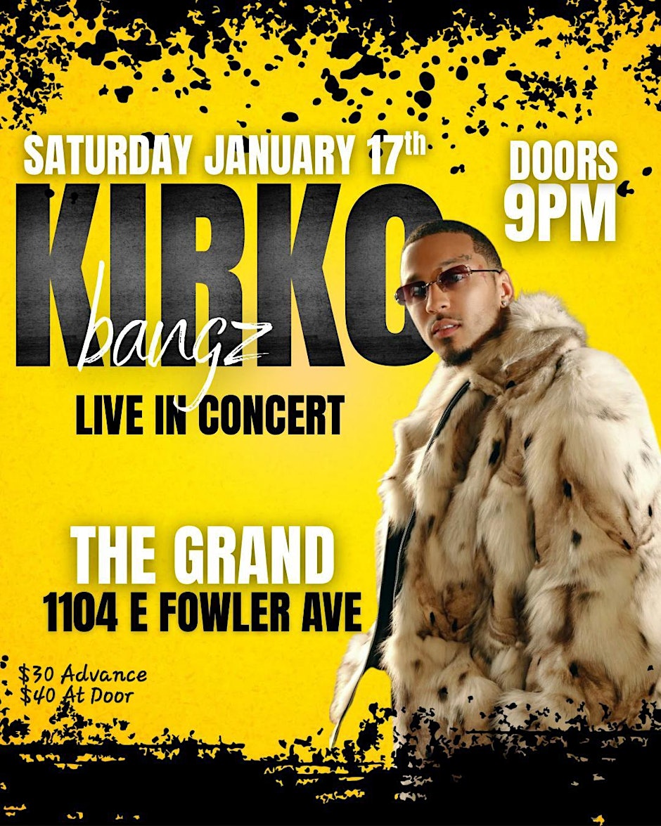 Tampa, get ready to turn it up! Kirko Bangz Live In Concert hits January 17 from 9:00 PM to 11:30 PM EST at 1104 East Fowler Avenue, bringing a night full of hits, high energy, and unforgettable vibes. Known for his smooth flow, catchy hooks, and club anthems, Bryson βKirko Bangzβ Tillman is set to light up the stage and give fans a performance that will be talked about all year. π Location: 1104 East Fowler Avenue Tampa, FL 33612 ποΈ Donβt miss outβsecure your tickets now: πΒ Bring your energy, bring your crew, and get ready for a night of hip-hop you wonβt forgetβKirko Bangz is bringing the heat to Tampa! π₯π₯³πΆ Β #Tampa #TampaBay #StPete #Clearwater #ThingsToDo #LocalEvents #Networking #TampaBayConnects #TampaNetworking #WomenInBusiness #TampaEntrepreneurs #Startups #TampaEats #TampaNightlife #DowntownTampa #TampaEvents #TampaSocials #tampaMagazine #TampaBayMagazine TampaBusinessClub.com Tampabayconnects.com WomenImpactNetwork.com TampaBayLatinChamber.com https://www.eventbrite.com/e/kirko-bangz-live-in-concert-tickets-1976746146938?aff=ebdssbdestsearch tampabayconnects