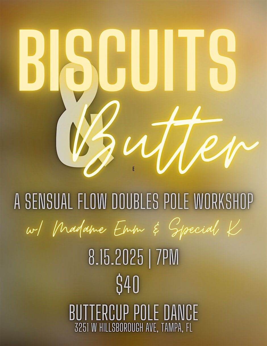 Ready to spice up your Friday night? Step into your power and sensuality at Biscuits & Butter: Sensual Flow Doubles Pole Workshop, happening Friday, August 15th from 7:00 to 8:30 PM at Buttercup Pole Dance LLC, Tampa’s ultimate destination for empowerment through movement. Doors open at 6:45 PM, so arrive early and bring your vibe! This unique doubles pole workshop blends confidence, creativity, and connection, perfect for duos who want to explore fluid, sensual flow on the pole. Whether you’re coming with your bestie, partner, or meeting someone new, you’re in for a night of fierce energy and unforgettable fun. 💫 What to Expect: A sensual, guided doubles pole experience A welcoming, body-positive space Expert instruction and supportive energy Laughter, strength, and serious moves! Come feel the beat, own your body, and celebrate the art of movement. No prior doubles experience needed—just bring your curiosity, courage, and a whole lot of sass. 🎟️ Spots are limited—secure yours now! 👉 Register here Catch a glimpse of what’s in store: Check out the vibe on Instagram Biscuits, butter, and bold moves—this is your moment. 💃🧈🔥 #Tampa #TampaBay #StPete #Clearwater #ThingsToDo #LocalEvents #Networking #TampaBayConnects #TampaNetworking #WomenInBusiness #TampaEntrepreneurs #Startups #TampaEats #TampaNightlife #DowntownTampa #TampaEvents #TampaSocials#tampaMagazine #TampaBayMagazine TampaBusinessClub.com Tampabayconnects.com WomenImpactNetwork.com TampaBayLatinChamber.com https://www.eventbrite.com/e/biscuits-butter-sensual-flow-doubles-pole-workshop-tickets-1445369592359?aff=ebdssbdestsearch tampabayconnects