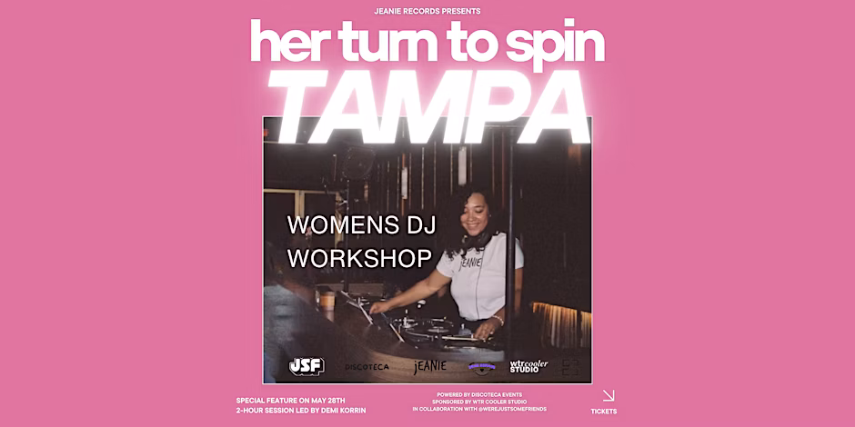 Calling all aspiring DJs, music lovers, and those ready to take their skills to the next level! Don’t miss out on an electrifying opportunity to learn from one of the best in the game—Demi Korrin! On Wednesday, May 28, from 7-9 pm EDT, Her Turn to Spin will be taking over Tampa, offering an exclusive DJ workshop hosted by the talented and inspiring Demi Korrin. Whether you’re looking to sharpen your skills or take the first step into the world of DJing, this is the event for you. Join us at 715 North Franklin Street, Tampa, FL, for a night filled with high-energy vibes, hands-on experience, and expert guidance in a supportive environment. Demi will walk you through the essentials of DJing, from mastering the equipment to perfecting your mixing techniques, all while empowering women to take the spotlight in an often male-dominated industry. Spaces are limited, so don’t wait to register! Secure your spot today and get ready to spin with confidence. Event Details: 📅 Date: Wednesday, May 28 🕖 Time: 7:00 – 9:00 pm EDT 📍 Location: 715 North Franklin St, Tampa, FL 33602 🎧 Workshop Hosted By: Demi Korrin 🔗 Register Now: Get your tickets here https://www.instagram.com/herturntospin/ https://www.eventbrite.com/e/her-turn-to-spin-tampa-dj-workshop-hosted-by-demi-korrin-tickets-1344872222019?aff=ebdssbdestsearch Don’t miss out on this incredible opportunity to learn, connect, and be inspired! #Tampa #TampaBay #StPete #Clearwater #ThingsToDo #LocalEvents #Networking #TampaBayConnects #TampaNetworking #WomenInBusiness #TampaEntrepreneurs #Startups #TampaEats #TampaNightlife #DowntownTampa #TampaEvents #TampaSocials#tampaMagazine #TampaBayMagazine TampaBusinessClub tampabayconnects.com WomenImpactNetwork TampaBayLatinChamber https://www.eventbrite.com/e/her-turn-to-spin-tampa-dj-workshop-hosted-by-demi-korrin-tickets-1344872222019?aff=ebd bd search tampabayconnects