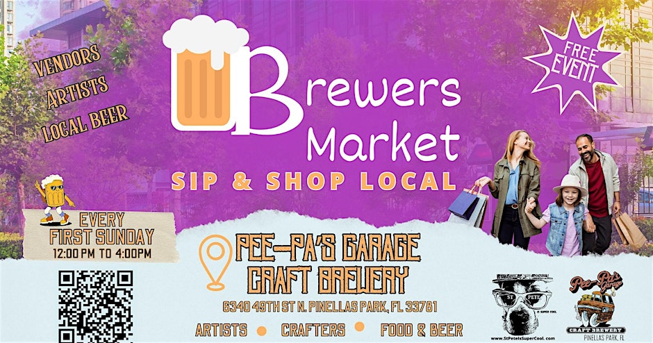 Pinellas Park locals, get ready to raise a glass and explore local creativity! Every first Sunday from 12 PM to 4 PM, Pee-Pa’s Garage Craft Brewery at 6340 49th Street North hosts the Brewers Market, a vibrant gathering where craft beer meets local art, handmade goods, and community spirit. Discover a wide range of artisan products, unique crafts, and tasty treats, all while enjoying freshly brewed beers from Pee-Pa’s. This market is the perfect way to shop local, support small businesses, and enjoy a relaxed, festive atmosphere with friends and family. Whether you’re a beer lover, a craft enthusiast, or just looking for a fun way to spend your Sunday afternoon, the Brewers Market promises good vibes, great drinks, and one-of-a-kind finds. 🎟 Reserve your spot or plan your visit today: Register here Follow for updates and highlights on Instagram: St Pete Is Super Cool 🍺✨🎨 Sip, shop, and celebrate local talent—your Sunday plans just got better! 🍺🎨🌟 #Tampa #TampaBay #StPete #Clearwater #ThingsToDo #LocalEvents #Networking #TampaBayConnects #TampaNetworking #WomenInBusiness #TampaEntrepreneurs #Startups #TampaEats #TampaNightlife #DowntownTampa #TampaEvents #TampaSocials#tampaMagazine #TampaBayMagazine TampaBusinessClub.com Tampabayconnects.com WomenImpactNetwork.com TampaBayLatinChamber.com https://www.eventbrite.com/e/brewers-market-tickets-1259613942209?aff=ebdssbdestsearch tampabayconnects