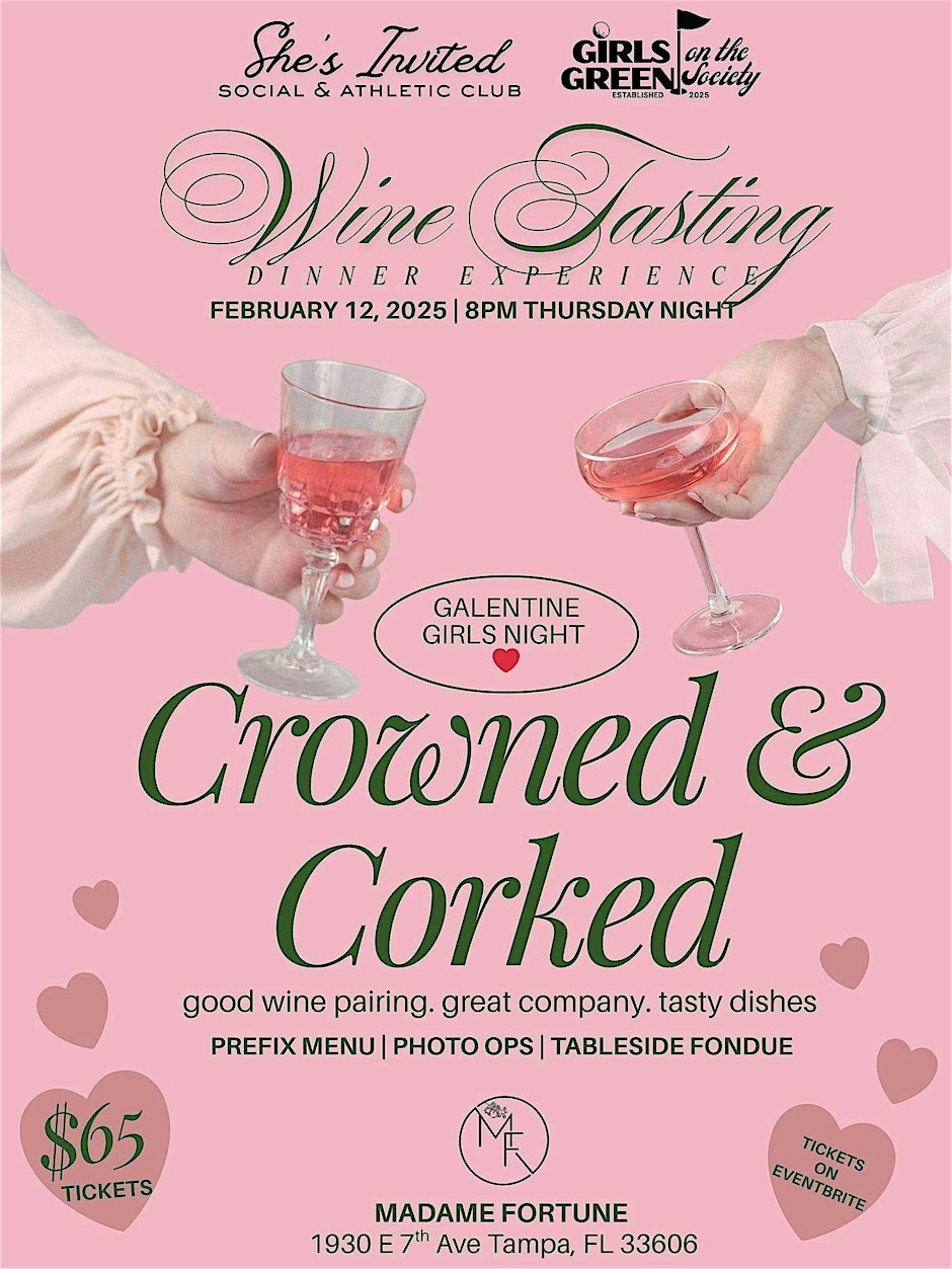 Grab your friends for an elegant evening of wine, dessert, and celebration at Crown & Corked: Galentine Girls Night Wine Tasting Dinner, a festive event designed to honor friendship and connection. Hosted at Madame Fortune Dessert + HiFi Parlour, this Galentine’s-themed wine tasting dinner will take place on Wednesday, February 12, from 8:00 PM to 11:00 PM EST. Guests can enjoy curated wine selections, indulgent desserts, and a stylish atmosphere perfect for a memorable night out. 📍 Location: Madame Fortune Dessert + HiFi Parlour 1930 East 7th Avenue, Suite C Tampa, FL 33605 🎟 Event Registration: https://www.eventbrite.com/e/crown-corked-galentine-girls-night-wine-tasting-dinner-tickets-1980172671766?aff=ebdssbdestsearch 🔗 Follow & Learn More: Instagram: https://www.instagram.com/p/DTSZuBqjolZ/ #Tampa #TampaBay #StPete #Clearwater #ThingsToDo #LocalEvents #Networking #TampaBayConnects #TampaNetworking #WomenInBusiness #TampaEntrepreneurs #Startups #TampaEats #TampaNightlife #DowntownTampa #TampaEvents #TampaSocials #tampaMagazine #TampaBayMagazine TampaBusinessClub.com Tampabayconnects.com WomenImpactNetwork.com TampaBayLatinChamber.com InGateConsulting.com 🎟 Event Registration: https://www.eventbrite.com/e/crown-corked-galentine-girls-night-wine-tasting-dinner-tickets-1980172671766?aff=ebdssbdestsearch Tampa Bay Connects is a community discovery and media platform. We do not organize, host, manage, or operate the events featured on this site. All events, trademarks, logos, photographs, and promotional materials are the property of their respective owners and are displayed for informational and promotional purposes only. Our content is shared to help connect the community with local experiences and is sourced from public event listings, organizers, or official promotional channels. Full credit is given to the original event organizers, and direct links to official event pages are provided whenever available. Inclusion on TampaBayConnects.com does not imply sponsorship, partnership, or endorsement by Tampa Bay Connects, unless explicitly stated. tampabayconnects