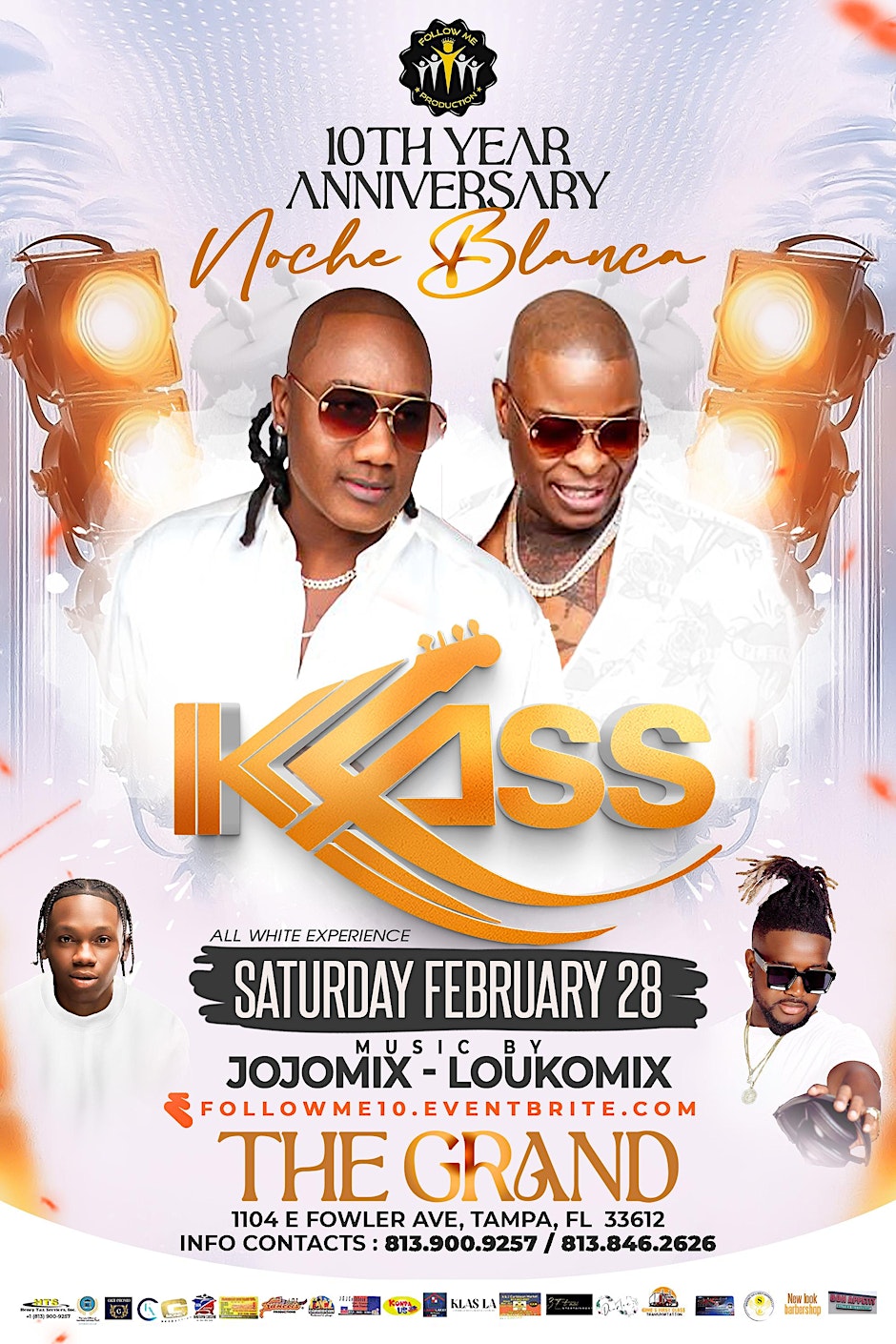 Get ready for a high-energy night of live music and celebration! KLASS Live in Tampa II is bringing the party to The Grand Karaoke Lounge with a special Noche Blanca (All White) theme. This event is part of the FollowMe 10th Year celebration and promises an unforgettable night of music, dancing, and good vibes. 📍 Event Details: Organizer: KLASS Live / FollowMe Location: The Grand Karaoke Lounge, 1104 East Fowler Avenue #102, Tampa, FL 33612, United States Date & Time: February 28 from 10:00 PM to March 1 at 3:00 AM EST 🎟️ Event Registration: 👉 Tickets and RSVP here: https://www.eventbrite.com/e/klass-live-in-tampa-ii-followme-10th-year-ii-noche-blanca-ii-all-white-tickets-1979274669818?aff=ebdssbdestsearch 📱 Social Media: Instagram: https://www.instagram.com/p/DTbGn7AkVk4/ #Tampa #TampaBay #StPete #Clearwater #ThingsToDo #LocalEvents #Networking #TampaBayConnects #TampaNetworking #WomenInBusiness #TampaEntrepreneurs #Startups #TampaEats #TampaNightlife #DowntownTampa #TampaEvents #TampaSocials #tampaMagazine #TampaBayMagazine TampaBusinessClub.com Tampabayconnects.com WomenImpactNetwork.com TampaBayLatinChamber.com InGateConsulting.com 👉 Tickets and RSVP here: https://www.eventbrite.com/e/klass-live-in-tampa-ii-followme-10th-year-ii-noche-blanca-ii-all-white-tickets-1979274669818?aff=ebdssbdestsearch Tampa Bay Connects is a community discovery and media platform. We do not organize, host, manage, or operate the events featured on this site. All events, trademarks, logos, photographs, and promotional materials are the property of their respective owners and are displayed for informational and promotional purposes only. Our content is shared to help connect the community with local experiences and is sourced from public event listings, organizers, or official promotional channels. Full credit is given to the original event organizers, and direct links to official event pages are provided whenever available. Inclusion on TampaBayConnects.com does not imply sponsorship, partnership, or endorsement by Tampa Bay Connects, unless explicitly stated. tampabayconnects
