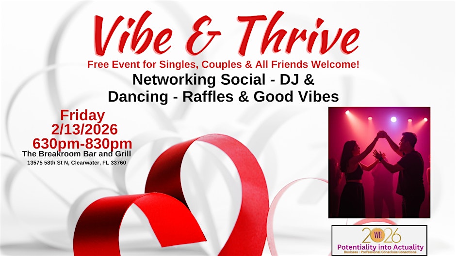 We Empower Together Network is hosting the Vibe & Thrive Social and Dance, an evening event designed to bring together women from Clearwater, St. Pete, and Tampa for connection, movement, and positive energy. The event will take place at The Breakroom Bar & Grill on February 13 from 6:30 PM to 8:30 PM EST. Attendees can expect a fun, welcoming atmosphere that blends social networking with music and dance in a relaxed setting. This event is organized by We Empower Together Network. 📍 Location: The Breakroom Bar & Grill, Tampa Bay Area 📅 Date: February 13 ⏰ Time: 6:30 PM – 8:30 PM EST 🎟 Event Registration: https://www.eventbrite.com/e/vibe-thrive-social-and-dance-clearwaterst-petetampa-tickets-1981812760315?aff=ebdssbdestsearch 📲 Instagram: https://www.instagram.com/weempowertogethernetwork/ #Tampa #TampaBay #StPete #Clearwater #ThingsToDo #LocalEvents #Networking #TampaBayConnects #TampaNetworking #WomenInBusiness #TampaEntrepreneurs #Startups #TampaEats #TampaNightlife #DowntownTampa #TampaEvents #TampaSocials #tampaMagazine #TampaBayMagazine TampaBusinessClub.com Tampabayconnects.com WomenImpactNetwork.com TampaBayLatinChamber.com InGateConsulting.com 🎟 Event Registration: https://www.eventbrite.com/e/vibe-thrive-social-and-dance-clearwaterst-petetampa-tickets-1981812760315?aff=ebdssbdestsearch Tampa Bay Connects is a community discovery and media platform. We do not organize, host, manage, or operate the events featured on this site. All events, trademarks, logos, photographs, and promotional materials are the property of their respective owners and are displayed for informational and promotional purposes only. Our content is shared to help connect the community with local experiences and is sourced from public event listings, organizers, or official promotional channels. Full credit is given to the original event organizers, and direct links to official event pages are provided whenever available. Inclusion on TampaBayConnects.com does not imply sponsorship, partnership, or endorsement by Tampa Bay Connects, unless explicitly stated. tampabayconnects