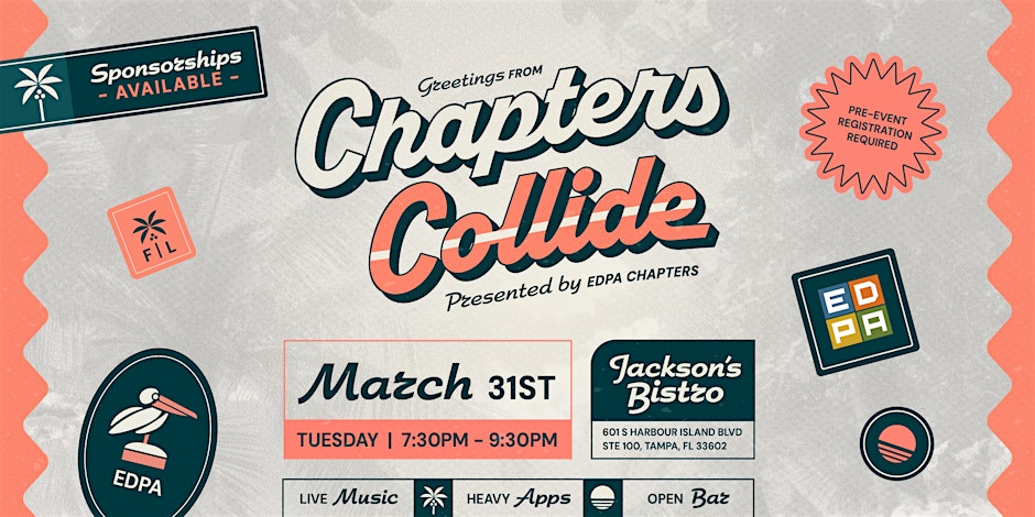 Tampa Bay Connects is excited to highlight an upcoming professional networking event for event marketers, exhibitors, and industry collaborators! EDPA (Exhibit & Display Professionals Association) is bringing together members from multiple chapters for an evening of connection and conversation at EXHIBITORLIVE 2026. 📍 Location: Jackson’s Bistro, Bar & Sushi of Tampa 📅 Date & Time: Sunday, March 31, 2026 — 7:30 PM to 10:30 PM EDT This event, organized by the EDPA Chapters, invites professionals in the events, exhibits, and trade show industry to mingle, share insights, and build partnerships in a relaxed social setting during the larger EXHIBITORLIVE conference week. 🎟️ Registration: Reserve your spot here: 👉 https://www.eventbrite.com/e/edpa-chapters-collide-at-exhibitorlive-2026-tickets-1980717778194?aff=ebdssbdestsearch 📱 Follow for Updates: • Instagram Preview: https://www.instagram.com/p/DUbQ6AOj-pN/ • EDPA Chapter Events Info: https://www.edpa.com/edpa-chapter-events Whether you’re local to Tampa or in town for EXHIBITORLIVE, this is a great opportunity to connect with industry peers over great food and conversation. #Tampa #TampaBay #StPete #Clearwater #ThingsToDo #LocalEvents #Networking #TampaBayConnects #TampaNetworking #WomenInBusiness #TampaEntrepreneurs #Startups #TampaEats #TampaNightlife #DowntownTampa #TampaEvents #TampaSocials #tampaMagazine #TampaBayMagazine TampaBusinessClub.com Tampabayconnects.com WomenImpactNetwork.com TampaBayLatinChamber.com InGateConsulting.com 👉 https://www.eventbrite.com/e/edpa-chapters-collide-at-exhibitorlive-2026-tickets-1980717778194?aff=ebdssbdestsearch Tampa Bay Connects is a community discovery and media platform. We do not organize, host, manage, or operate the events featured on this site. All events, trademarks, logos, photographs, and promotional materials are the property of their respective owners and are displayed for informational and promotional purposes only. Our content is shared to help connect the community with local experiences and is sourced from public event listings, organizers, or official promotional channels. Full credit is given to the original event organizers, and direct links to official event pages are provided whenever available. Inclusion on TampaBayConnects.com does not imply sponsorship, partnership, or endorsement by Tampa Bay Connects, unless explicitly stated. tampabayconnects