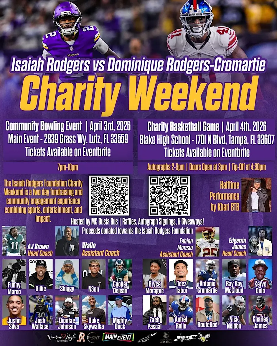 Rodgers vs. Dominique Rodgers-Cromartie Charity Basketball Game, a high-energy community event supporting a meaningful cause. Hosted by the Isaiah Rodgers Foundation, this charity game brings together fans, athletes, and community members for an afternoon of competitive fun and philanthropy. Event Details Organizer: Isaiah Rodgers Foundation Location: Blake High School Date & Time: April 4, 2:00 PM – 7:00 PM EDT Registration: https://www.eventbrite.com/e/isaiah-rodgers-vs-dominque-rodgers-cromartie-charity-basketball-game-tickets-1982338536927?aff=ebdssbdestsearch Attendees can look forward to an exciting matchup between Isaiah Rodgers and Dominique Rodgers-Cromartie, along with a lively atmosphere that promotes community engagement while supporting charitable initiatives. More Information & Social Media Instagram: https://www.instagram.com/isaiahrodgersfoundation/ #Tampa #TampaBay #StPete #Clearwater #ThingsToDo #LocalEvents #Networking #TampaBayConnects #TampaNetworking #WomenInBusiness #TampaEntrepreneurs #Startups #TampaEats #TampaNightlife #DowntownTampa #TampaEvents #TampaSocials #tampaMagazine #TampaBayMagazine TampaBusinessClub.com Tampabayconnects.com WomenImpactNetwork.com TampaBayLatinChamber.com InGateConsulting.com Registration: https://www.eventbrite.com/e/isaiah-rodgers-vs-dominque-rodgers-cromartie-charity-basketball-game-tickets-1982338536927?aff=ebdssbdestsearch Tampa Bay Connects is a community discovery and media platform. We do not organize, host, manage, or operate the events featured on this site. All events, trademarks, logos, photographs, and promotional materials are the property of their respective owners and are displayed for informational and promotional purposes only. Our content is shared to help connect the community with local experiences and is sourced from public event listings, organizers, or official promotional channels. Full credit is given to the original event organizers, and direct links to official event pages are provided whenever available. Inclusion on TampaBayConnects.com does not imply sponsorship, partnership, or endorsement by Tampa Bay Connects, unless explicitly stated. tampabayconnects