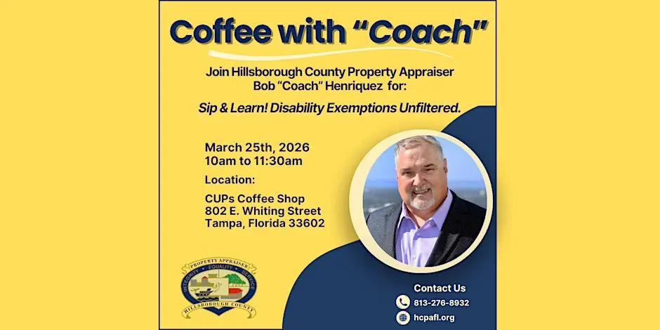 Coffee with “Coach” – Tampa Bay Start your morning with inspiration and connection at Coffee with “Coach”, hosted by HCPA Florida. This engaging event encourages meaningful conversations over coffee and provides attendees with guidance, motivation, and networking opportunities. Join the event at Coffee Uniting People (CUP) on Wednesday, March 25 from 10:00 AM to 11:30 AM. Secure your spot and register online here: https://www.eventbrite.com/e/coffee-with-coach-tickets-1984574742478?aff=ebdssbdestsearch Stay connected with the organizers: Website – https://www.hcpafl.org/ Instagram – https://www.instagram.com/hcpaflorida/?hl=en #Tampa #TampaBay #StPete #Clearwater #ThingsToDo #LocalEvents #Networking #TampaBayConnects #TampaNetworking #WomenInBusiness #TampaEntrepreneurs #Startups #TampaEats #TampaNightlife #DowntownTampa #TampaEvents #TampaSocials #tampaMagazine #TampaBayMagazine TampaBusinessClub.com Tampabayconnects.com WomenImpactNetwork.com TampaBayLatinChamber.com InGateConsulting.com 🔗 Register here: https://www.eventbrite.com/e/coffee-with-coach-tickets-1984574742478?aff=ebdssbdestsearch Tampa Bay Connects is a community discovery and media platform. We do not organize, host, manage, or operate the events featured on this site. All events, trademarks, logos, photographs, and promotional materials are the property of their respective owners and are displayed for informational and promotional purposes only. Our content is shared to help connect the community with local experiences and is sourced from public event listings, organizers, or official promotional channels. Full credit is given to the original event organizers, and direct links to official event pages are provided whenever available. Inclusion on TampaBayConnects.com does not imply sponsorship, partnership, or endorsement by Tampa Bay Connects, unless explicitly stated. tampabayconnects
